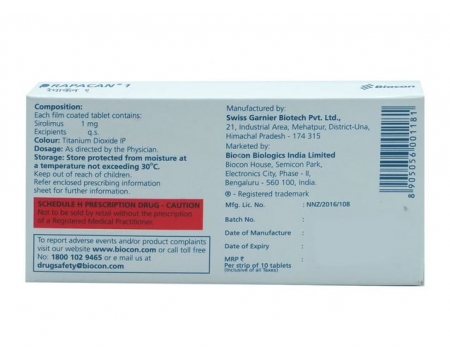 - Rapamycine Générique 1 mg : boîte de 90 comprimés (+6 offerts) – prix 457 € + Livraison gratuite